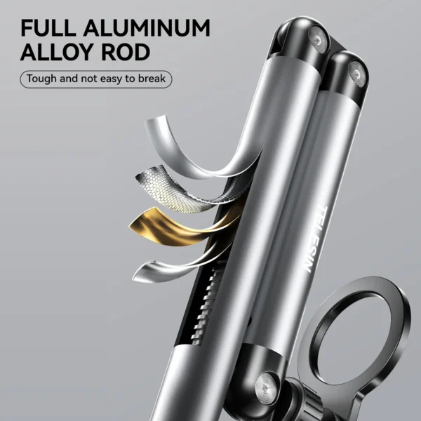Prenosno in lahko stojalo s funkcijami fotografiranja s polnim nagibom. Sprostite roke, bodite dober voditelj oddaje v živo in lažje snemajte. Z magnetom se pritrdi na mobilne telefone, zaradi česar je lažje snemati. Vrtljiva gred in prilagodljiv kot, prilagodljiva nastavitev pod različnimi koti za snemanje ponujajo možnosti snemanja od zgoraj navzdol . Stojalo je stabilno in nezibljivo, zložljivo za shranjevanje in prilagodljivo gibanje.