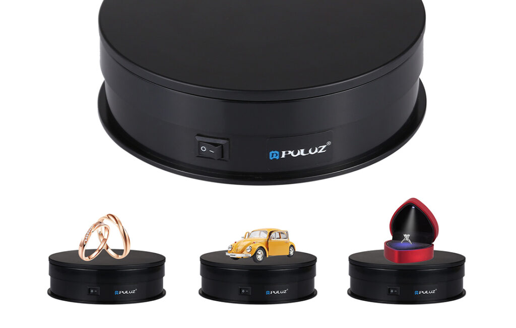 Stojalo ima en sam gumb, s katerim ga lahko vklopite, izklopite ali stojalu spremenite smer vrtenja. Stojalo PU3048B se vrti za 360°, kar vam omogoča, da si razstavljeni izdelek ogledate z vseh strani. Poleg tega je stojalo opremljeno z nedrsečo podlogo, zato ga lahko brez skrbi postavite na gladko površino.